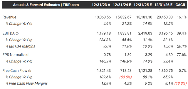 由于其非常成功的底线改善和管理层的上调前瞻性指引,我们可以理解为什么共识已经上调了他们的前瞻性估计,预计到 2026 财年,Sea Limited将实现扩大的顶线/底线增长,复合年增长率为 +16.1%/ +77.6%。