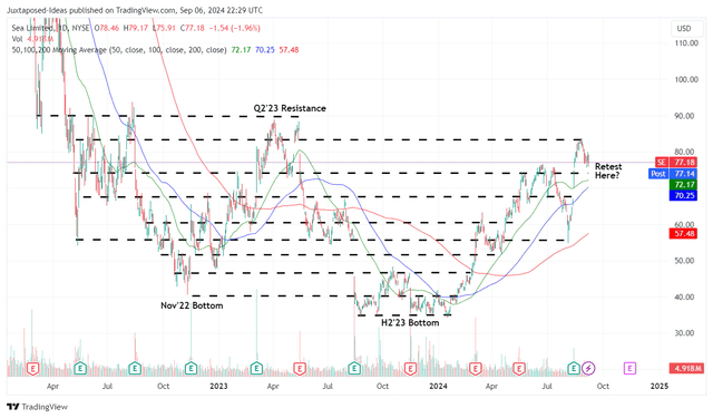 因此,毫不奇怪的是,Sea Limited已经从 2024 年 1 月的 34 美元底部和最近 2024 年 8 月的 55 美元回调中实现了令人印象深刻的复苏。