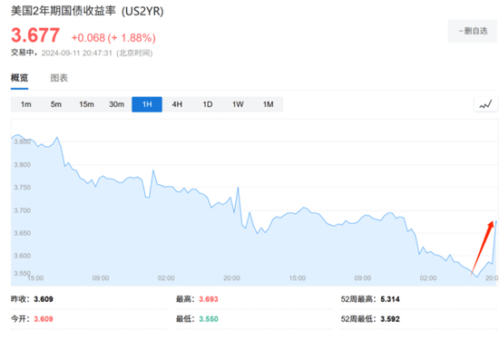 美国8月核心通胀回升,美债跌至盘中低点,美元指数短线拉升,美股期货短线走低