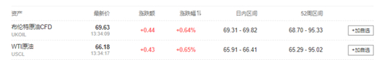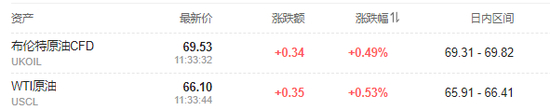 布油、美油日内涨约0.5%,均在70美元下方。