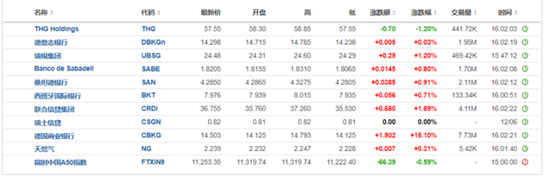 欧股“十一罗汉”多数上涨,银行股涨幅居前,德国商业银行涨超15%,联合信贷集团涨近2%,瑞银集团涨超1%。