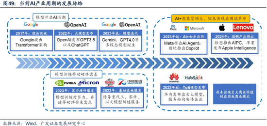 当前AI处于基础设施铺设与硬件需求爆发时期,暂未实现应用端革命。 24年有大模型及应用的预期,但没有到达商业化落地的阶段。