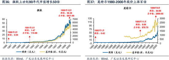 第一:从技术走向产品(找到商业化路径)。操作系统开发商的微软和处理器制造商的英特尔处于不可替代的位置,关键技术突破的时点都对应股票主升浪:例如英特尔给每台PC一颗奔腾的芯,从生产低性能的微处理器,到1986年研制出的32位微处理器快速扩大份额,到93年奔腾处理器,技术奠定霸主地位,也甩开了和其它公司的股价差距。