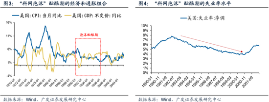 此外,当时美国的通胀水平和失业率均处于持续的下降通道之中,因此当时处于难得的“稳增长、低通胀、低失业”时期,可谓经济发展的“黄金时期”。