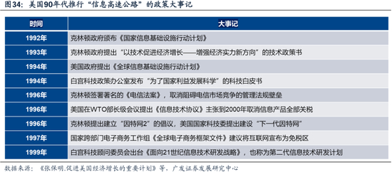 90s总统换届对于科网是明确的利空,由克林顿政府的大力支持、转变为小布什政府的相对谨慎。1993年克林顿政府颁布《国家信息基础设施行动计划》,计划用20年投资4000-5000亿美元投资。