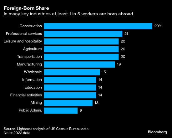 根据这项研究,可能需要移民来填补在美出生壮年男性带来的部分空缺。若没有移民,一些行业已经难以运转。Lightcast发现18%的医护人员来自美国以外地区,其中包括四分之一的医生和五分之一的注册护士。