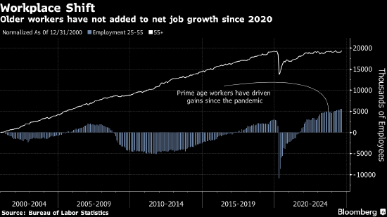原因之一是年龄较大的劳动者不再像疫情前的20年那样推动美国就业增长。该研究发现,2020年以来离开劳动力市场的500万名劳动者中,约有五分之四年龄在55岁以上。