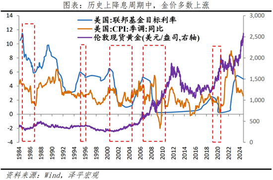 美联储降息落地催化黄金价格。回顾1984年以来美联储的6轮降息周期过程,无论是预防式降息和纾困式降息,黄金多数上涨,出于黄金的避险需求。9月19日下午2点,伦敦金现和COMEX黄金涨幅分别为17.8%和2.8%。