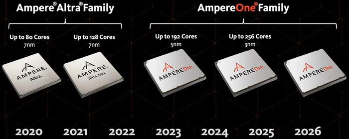 在Ampere团队看来,大多数服务器的云基础架构仍在使用30年前的处理器技术。为了满足现代云的需求,Ampere从头开始设计了业界第一个服务器微处理器体系架构,在2020年推出有80核的业界首款云原生处理器Ampere Altra,2021年推出业界首款128核云原生处理器Ampere Altra Max,2023年推出拥有多达192个单线程Ampere自研核的全新AmpereOne处理器,今年5月公布最新产品路线图。