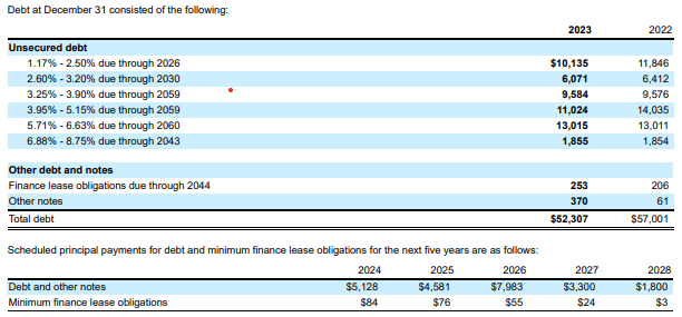 该公司最大的风险是其流动性状况。2020 年,该公司承担了大量债务以支撑其资产负债表,其长期债务从 2019 年的 85 亿美元增加到 2021 年的 609.8 亿美元;到目前为止,该公司已成功将长期债务减少至 466.2 亿美元。根据 BA 的2024 财年 10-K 文件,该公司预计将在 2024 财年、2025 财年和 2026 财年分别偿还 51 亿美元(约 44 亿美元)、45.8 亿美元和 79.8 亿美元的现有债务。