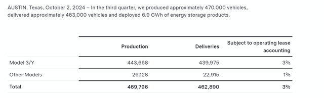 该公司的业务主要由Model 3/Y支撑,共生产了44.4万辆汽车,交付了44万辆。其他车型产量为2.6万辆,交付量为2.3万辆。虽然这是该公司相对强劲的一个季度,但低于该公司2023年第二季度和第四季度的水平,表明该公司的业绩实际上持平。
