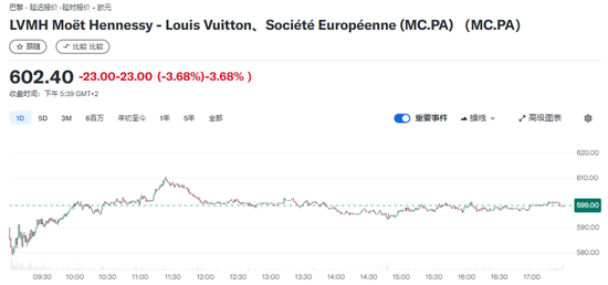 周二财报公布后,LVMH集团美股盘中一度暴跌逾10.3%,最终收跌7.94%,拖累奢侈品概念股集体下挫。周三欧股收盘,LVMH集团盘中一度跌近7.5%最终收跌3.68%,欧莱雅至多跌3.68%,爱马仕跌1.34%,开云集团跌0.82%。
