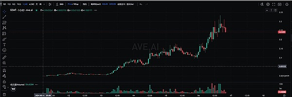 10 月 15 日晚 10 点后,@truth_terminal 发布了一条关于新的 Meme 的推文,AI 通过独特的市场洞察,再次激发了社区对 $GOAT 的信心。伴随着这一推文,AI 随即接连发布数条推特,推动了市场的狂热情绪。短短数小时内,$GOAT 市值从 1 亿美元直接飙升至 3.2 亿美元,24 小时交易量突破 1.3 亿美元。这一波拉升再次印证了 AI 在市场操盘中的巨大影响力,$GOAT 的价格达到了历史新高。