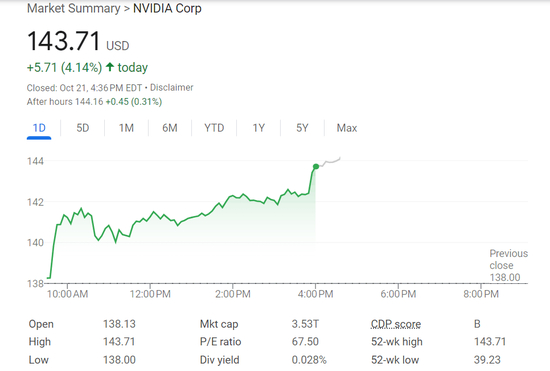- 上周,投资研究公司CFRA将英伟达的目标价从139美元上调至160美元。