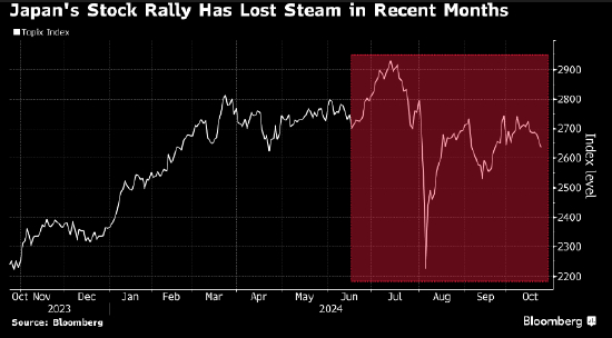 “我觉得日本现在处于无论如何都会赢的局面,” 隆奥亚洲首席投资官John Woods周三在新加坡举行的一个媒体活动上表示。他说,前总统唐纳德·特朗普大选获胜将有助于美元保持稳定或走强,对日本股票来说是个利好。另一方面,如果副总统卡玛拉·哈里斯获胜,提高关税可能不会成为选项,也会提振日本市场。