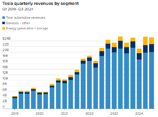 汽车业务收入较上年同期的196.3亿美元增长2%,至200亿美元。能源生产和存储收入飙升52%,达到23.8亿美元,而服务和其他收入(包括特斯拉汽车的非保修维修收入)增长29%,达到27.9亿美元。