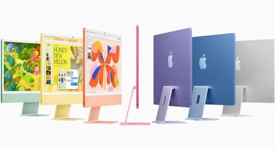 新款iMac电脑仍提供七种配色,即绿、黄、橙、粉、紫、蓝和银色,不过没有采用更柔和的色调,而是将其调得更深,并提供颜色匹配的配件。