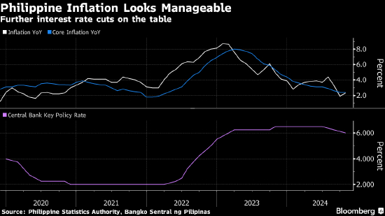 菲律宾央行上月进行了今年以来的第二次降息,将基准利率下调25个基点至6%,因通胀放缓为进一步放松政策提供了空间。Remolona曾表示,除非菲律宾经济增长放缓,否则央行不太可能降息50个基点。