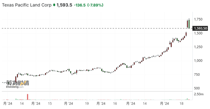 上周五(11月22日),Texas Pacific Land Corporation(股票代码:TPL)股价收涨超14%,当周累涨逾27%。虽然周一跌近8%,但年内涨幅仍能稳定在210%附近。