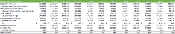 对于 2025 年第四季度,预测 CrowdStrike 将产生 10.34 亿美元的净收入和 0.85 美元/股的调整后每股收益。