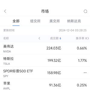 12月3日美股成交额前20:苹果再创历史新高,市值超3.66万亿美元