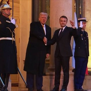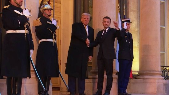 当地时间12月7日下午,法国总统马克龙在总统府爱丽舍宫会见到访的美国当选总统特朗普。特朗普于7日早晨抵达巴黎,他将出席当晚举行的巴黎圣母院重新开放仪式。