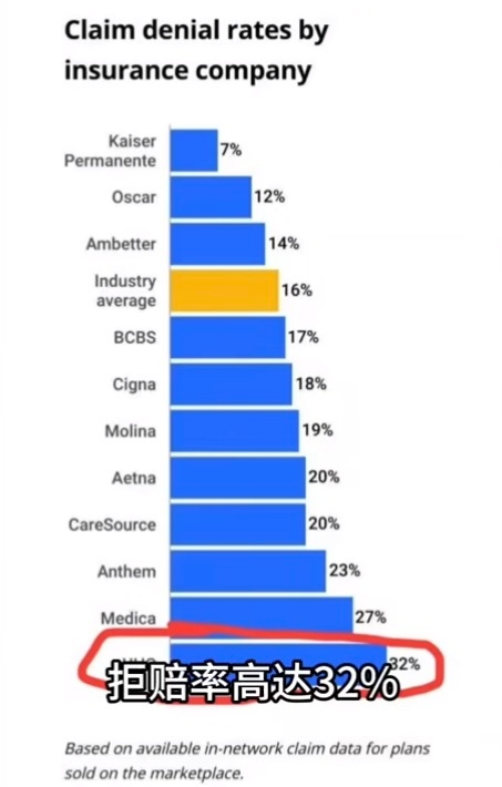 因为这次暗杀点燃了美国民众对于美国医疗保险公司的愤怒,联合健康保险拒保率是最高的,高达35% ,远超过行业平均16%的拒赔率。可以说是吃人血馒头了,而联合健康保险公司高管却赚得盆满钵满,去年汤普森的年薪高达1020万美元。