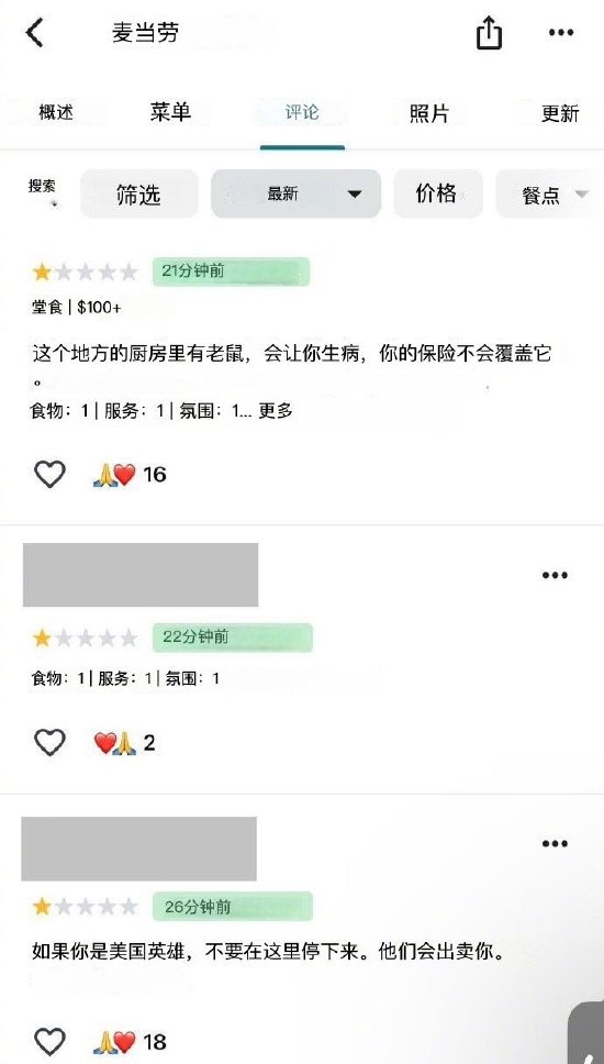 这家麦当劳店现在全是差评,评论区:“这地方有老鼠(告密者)”。