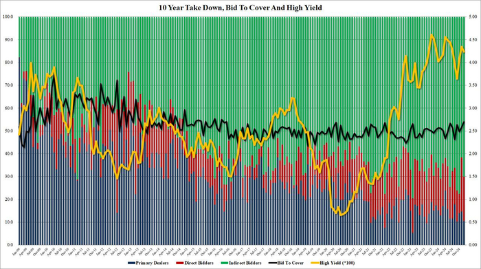 作为承接所有未购买供应的“接盘侠”,一级交易商(Primary dealers)本轮获配比例为10.5%,创下今年9月以来的最低水平。