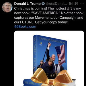 15日,美国当选总统特朗普在社交平台X发文宣传新书《拯救美国(Save America)》,称这是最热门的圣诞节礼物,并介绍称“没有其他的书能描述我们的运动、我们的竞选和我们的未来。”
