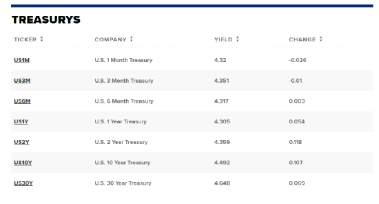 10年期国债的收益率上涨约9个基点,至4.474%。2年期国债收益率飙升逾8个基点,至4.327%。