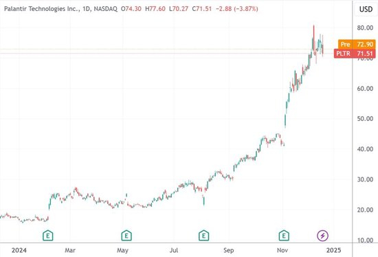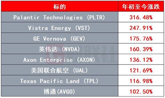 照今年至今的趋势,有望勇夺美股基准指数成分股年内涨幅冠军的是大数据分析软件公司Palantir,年初至今的涨幅达到316%,基本算是稳赢了。