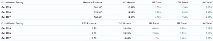 鉴于其 2024 财年 AI 加速器/网络收入基础的复合年增长率为 +83.1%,从 2024 财年的 122 亿美元增至 2027 财年中期的 750 亿美元,分析师同意管理层的乐观情绪,即他们“非常有能力在未来获得领先的市场份额”。