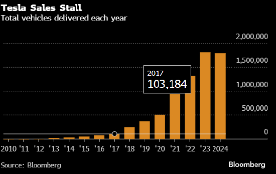 特斯拉电动车全年销量十多年来首次同比下降 盘中股价一度跌近6%