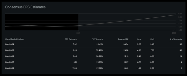 然而,这种估值模型也存在风险,因为 AMD 的管理层必须在软件和硬件方面都取得高于平均水平的表现,并能够在未来 4 年内实现 15% 的市场份额。这些假设还假设人工智能投资将继续增加,到 2028 年人工智能加速器市场将达到 5000 亿美元。另一方面,AMD 有足够的下行保护,因为该公司的预期 EV/EBITDA 仅为 21.20 倍。