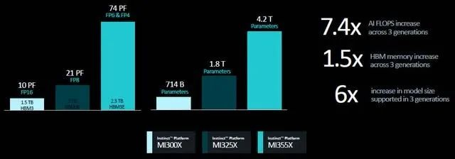 因此,我们特别期待即将于 2025 年下半年推出的 MI350 系列,该系列预计将使当前的 MI325X相形见绌, MI355X同时支持 FP6 和 FP4,AI FLOPS 增加了 3.52 倍,而上一代产品与 MI325X 之间的 AI FLOPS 增加了 2.1 倍。随着产品发布的节奏加快,类似于英伟达从 2 年节奏转变为 1 年节奏,MI400 系列也在顺利开发中,预计将于 2026 年推出。