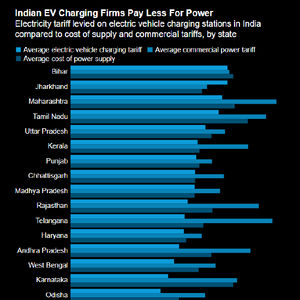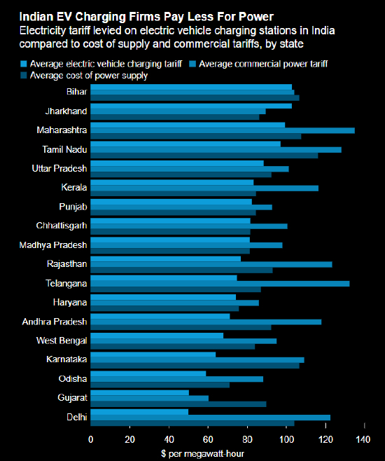 与商业设施相比,印度大多数邦的新能源汽车充电站需支付的电价更低。这些电价也低于供电成本。