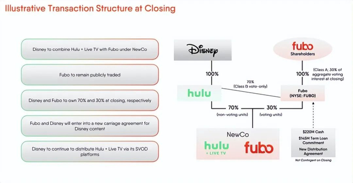 1 月 6 日上午,fuboTV 和迪士尼宣布两家公司将合作,采用多种方式。实际上,迪士尼将把其对 Hulu + Live TV 的所有权转让给 fuboTV,以换取 fuboTV 的新股份,这将使迪士尼拥有该业务 70% 的所有权。这笔交易背后可能有多种原因。首先,早在 2024 年初,迪士尼、福克斯公司和华纳兄弟探索频道就宣布联手为流媒体行业的体育迷打造一站式商店。