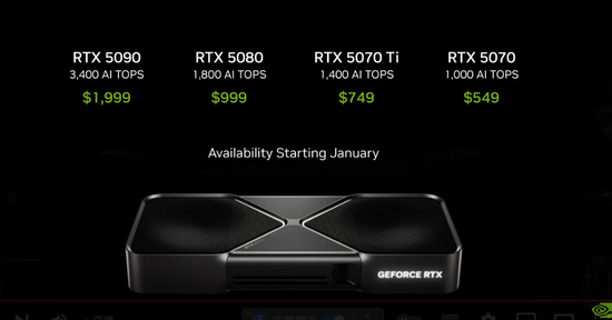RTX 5080、5070 Ti和5070的售价分别为999美元、749美元和549美元。