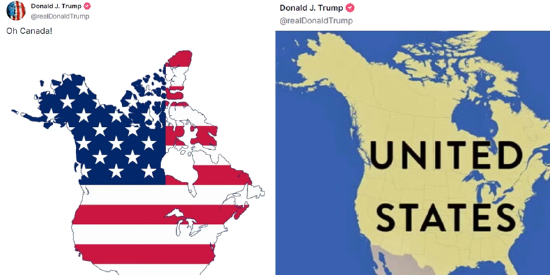 当被问及他是否会动用军事力量吞并加拿大时,他回答说“不会,要靠经济力量。因为加拿大和美国,那真的能成事。可以把那条人为划定的线给抹掉,再看看会是什么样子,而且这对国家安全也会好得多,别忘了加拿大基本上是我们在保护。”特朗普还说,美国不需要加拿大生产的“任何东西”。特朗普说:“他们应该成为一个州,特鲁多下来的时候我就是这么跟他说的。”