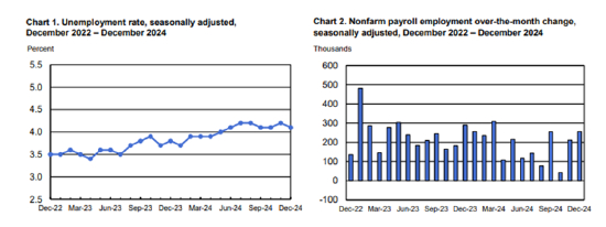 美国劳工统计局周五发布的报告显示,12月新增非农就业人数256000人,之前两个月的数据略有下修。失业率跌至4.1%,平均时薪环比增长0.3%。