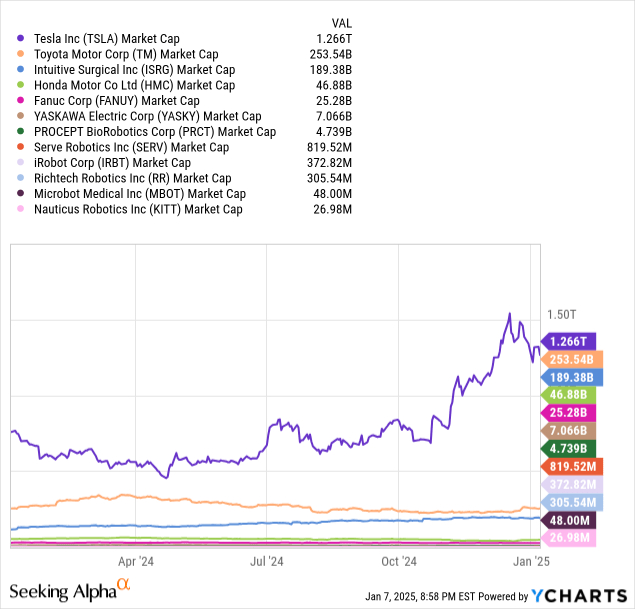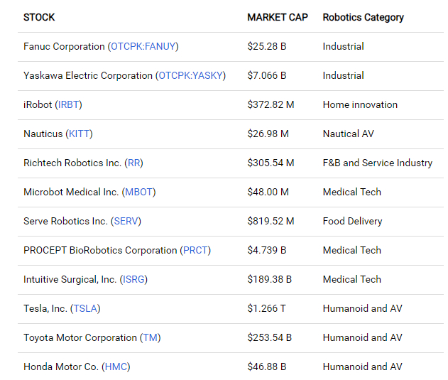 作为任何机器人主题的一部分,英伟达肯定是一只很好的“骨干”蓝筹股。然而,今天想特别关注那些实际生产最终产品机器人而不是外围部件的大盘股和小盘股的排名。