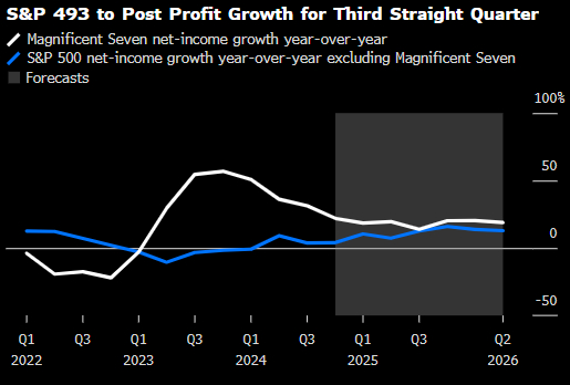 一个受到密切关注的问题是,盈利增长势头是否会加速扩大到最大的几家科技公司之外,这可能会提振市场上一些表现落后的公司。