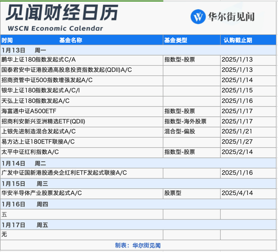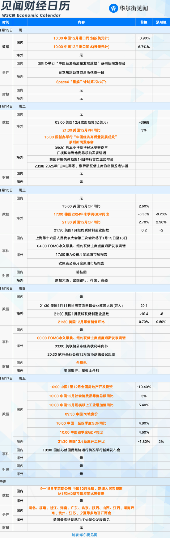 1月13日至1月17日当周重磅财经事件一览,以下均为北京时间: