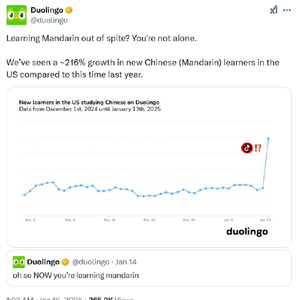 多邻国股价大涨近7%,美国用户掀起学中文热