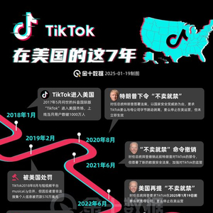2018年1月抖音国际版TikTok正式上线美国,当月用户破1000万人;2025年1月,TikTok被迫停止在美运行,此前用户数已突破1.7亿人……