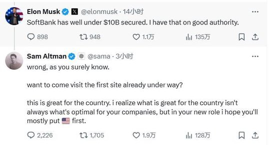 5000亿“星际之门”?马斯克:OpenAI没钱,软银也就不到100亿美元,Altman怼:来现场看