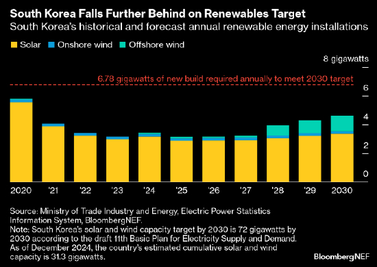 韩国在实现可再生能源目标方面进一步落后