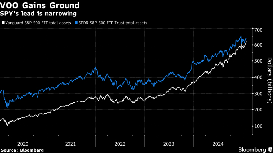 此外,VOO收取0.03%的年费,SPY则收取0.095%。研究公司ETFGI的联合创始人Deborah Fuhr说,这种成本差异使Vanguard享有“许多不同的资金来源” 。