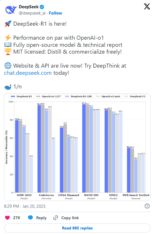 AI领域的几位知名人士对DeepSeek R1的颠覆性潜力进行了权衡:
